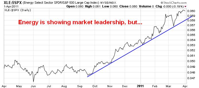 3. Oil service stocks are weak: Despite the fact that energy has been shown recent leadership, as shown by the relative chart below, but…