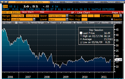 This next chart, showing an index of homebuilders’ stocks, also suggests we have seen the worse and are seeing some gradual improvement on the margin. Painfully slow, to be sure, but the trend appears to be heading up.