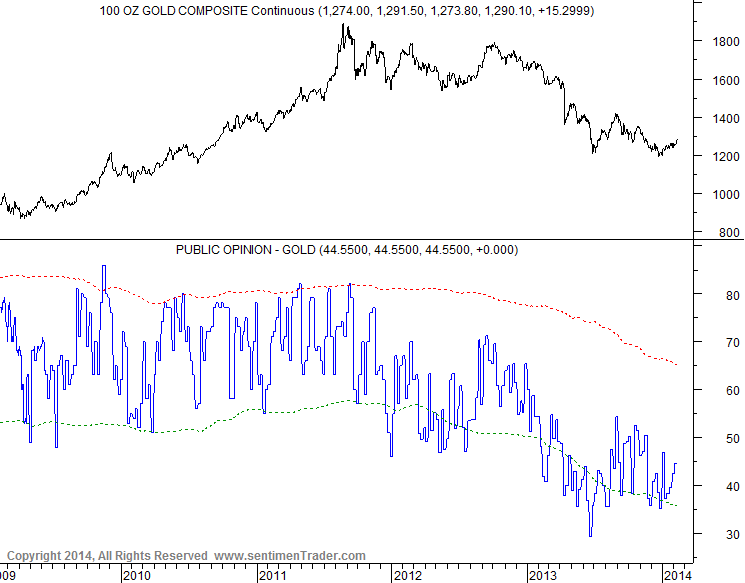 - gold sentiment levels to be pushed to bullish extremes from their current depressed levels, triggering an intermediate degree profit taking event into May or June.