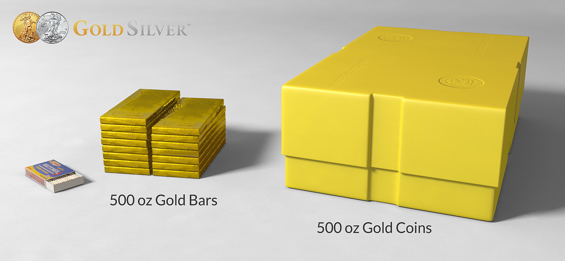 The other advantage of gold bars is that they’re easier to store. A gold bar takes up less space than the same number of ounces of coins. In fact, bars were originally designed specifically for ease of storage.
