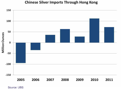 3. Chinese Silver ImportsApparently the Chinese have been net buyers of silver, just as they have been becoming net buyers of gold (Chart 1).